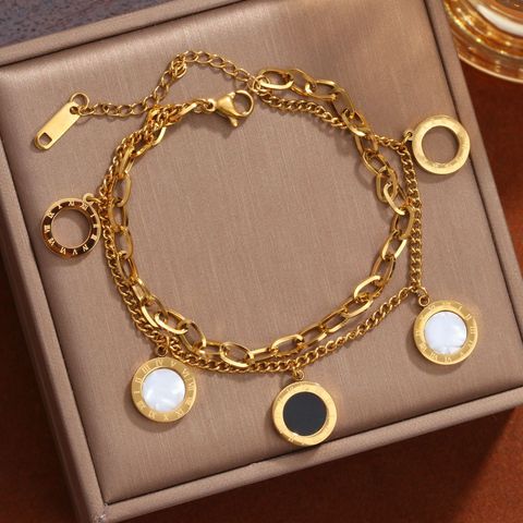 Impermeabile senza dissolvenza nero guscio bianco titanio acciaio doppio strato cubano bracciale conchiglia numeri romani pendente bracciale