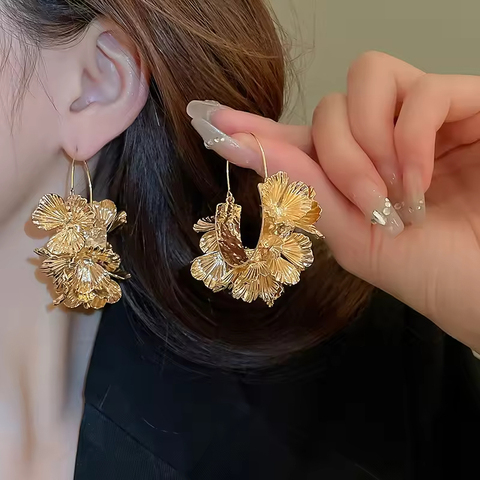Mạ Vàng Lớn Hoa Thời Trang Hoop Bông Tai Đồ Trang Sức Thời Trang Phóng Đại Hoa Trà Hoa Tai Cho Phụ Nữ