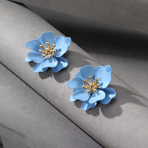 Thời Trang Lớn Hoa Bông Tai Cho Phụ Nữ Mạ Vàng Tuyên Bố Màu Xanh Hoa Bông Tai Đồ Trang Sức Hợp Thời Trang Hoa Bông Tai