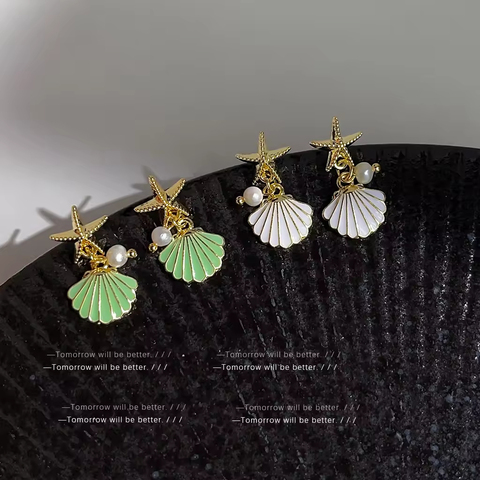 Bán buôn mạ vàng những người yêu thích và bạn bè Sophie Bông tai đồ trang sức con sao biển vỏ tự nhiên ngọc trai nước ngọt thả bông tai