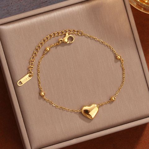 Thép Không Gỉ Chuỗi Bóng Đính Cườm Vòng Đeo Tay Trái Tim Thời Trang 18K Mạ Vàng Tình Yêu Trái Tim Mặt Dây Chuyền Có Thể Điều Chỉnh Chuỗi Vòng Đeo Tay Cho Phụ Nữ