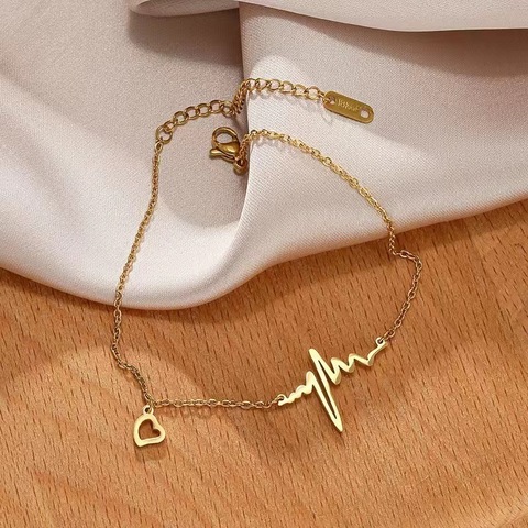 18K Mạ Vàng Lãng Mạn Tình Yêu Trái Tim Điện Tâm Đồ Xung Quyến Rũ Mặt Dây Chuyền Vòng Đeo Tay Thép Không Gỉ Nhịp Tim Phụ Nữ Vòng Đeo Tay