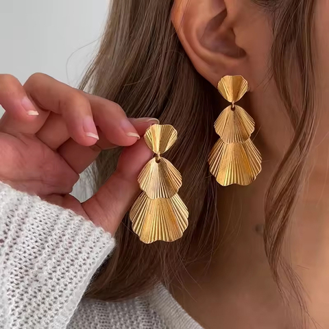 Hợp kim vàng Hoa Tai Dài Ginkgo lá tua Bông tai chất lượng cao phóng đại Hoa đồ trang sức thời trang thả bông tai